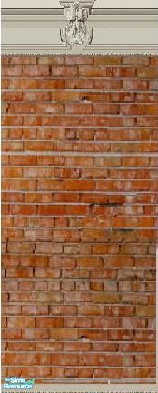 Worn red brick wall with beautiful and elegant crown molding, and baseboard.