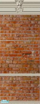 Worn red brick wall with beautiful and elegant crown molding, baseboard, and chair rail (a style of wainscoting).