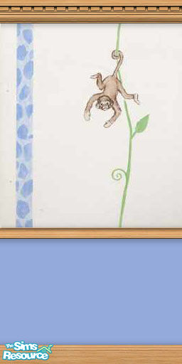 A set of four walls, each with different coloured wood trims. The wall features a monkey design perfect for a boys bedroom.