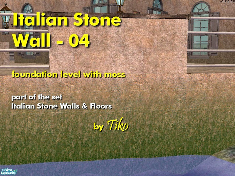 An alternative lower level wall panel in a sequence of graded wall panels, used where water is nearby. Best used on a foundation, with other items from Tiko's set, Italian Stone Walls & Floors.