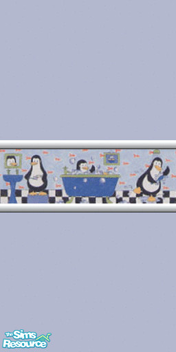 One of a set of 12 painted walls featuring a border of penguins bathing! Six with pink border, six with blue border. **TSRAA CONTENT **