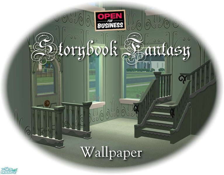 REQUIRES OPEN FOR BUSINESS! Part of a set of build mode objects to match the Maxis storybook fantasy theme in OFB. Stairs, fence, three windows, door, carpet and wallpaper included. TSRAA