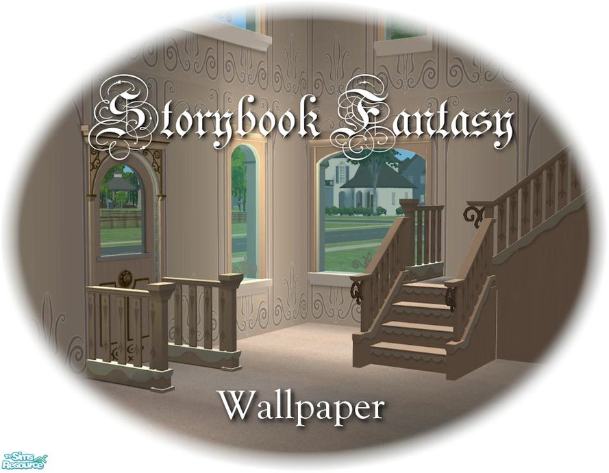 REQUIRES OPEN FOR BUSINESS! Part of a set of build mode objects to match the Maxis storybook fantasy theme in OFB. Stairs, fence, three windows, door, carpet and wallpaper included. TSRAA