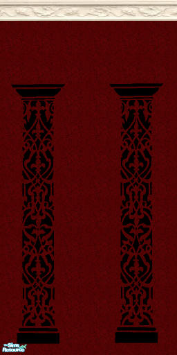 deep red wall with colunm print