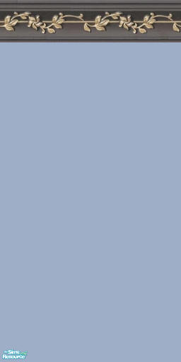 Dusty Blue paint topped with a dark grey crown molding lined with gold leaves.