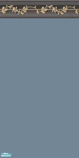 Steel Blue paint topped with a dark grey crown molding lined with gold leaves.