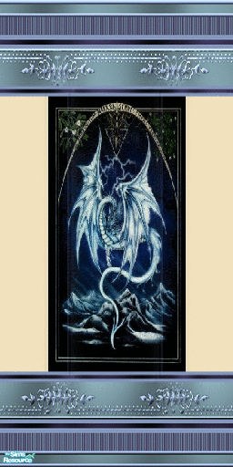 a metal frame moulding with cream paint and a mystical dragon.