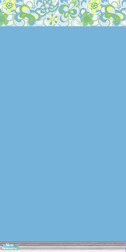 A funky 1970\'s retro style border on a blue painted wall. Border is made up of different blue, green and white psychadelic flowers.