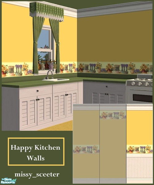 Brighten up your Sim kitchens with this beautiful and \"happy\" wall. Make them smile as they have their morning coffee. (1 of 3 in the set)