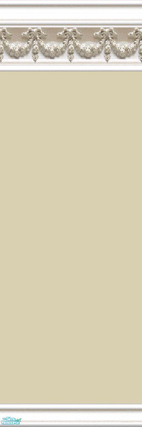 Newly revised, white, ornately carved, swagged, mouldings hold a muted and textured paint in yellow ochre.
