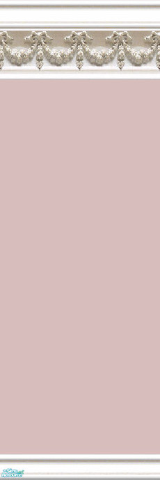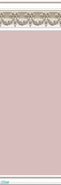Newly revised, white, ornately carved, swagged, mouldings hold a muted and textured paint in dull pink.