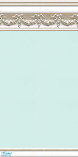 White wood mouldings carved with swags and medallions hold gently textured paint in soft jade.