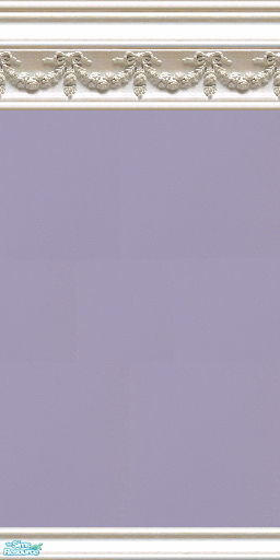 White wood mouldings carved with swags and medallions hold gently textured paint in a periwinle shade called lupin.