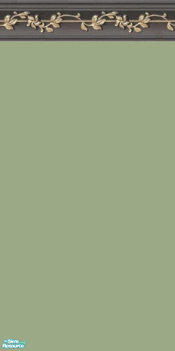 Olive paint topped with a dark grey crown molding lined with gold leaves.