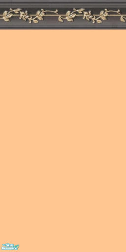 Peach paint topped with a dark grey crown molding lined with gold leaves. The peach side of PeachNBrown.