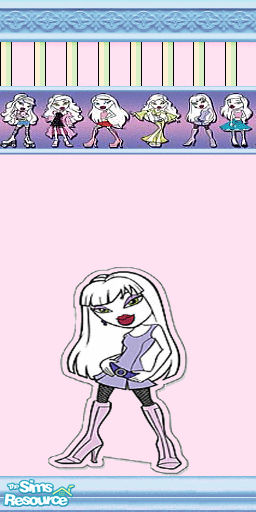 A sweet teen room is a few clicks away. Pink, yellow, green striped wallpaper with Bratz border and a large doll decal.