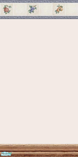 Apple, pear, plum, floral tile, with blue or cream paint and matching tile plus linoleum for a kitchen.