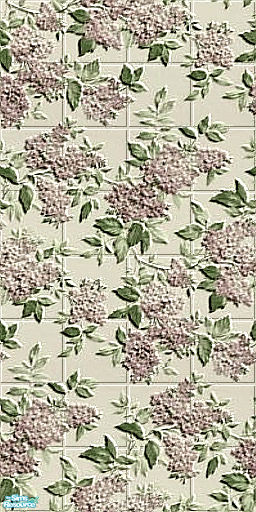 In chooses of white, mauve, sea green, and cream paint this wallpaper set with its textured lilacs is beautiful in game.