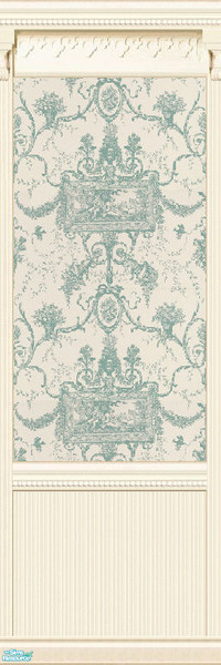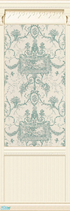 Redesigned with wainscotting, this beadboarded panel holds a blue and ivory toile wallpaper. Matching beadboard tile is included in this set. Please find in the \"paneling\" section.