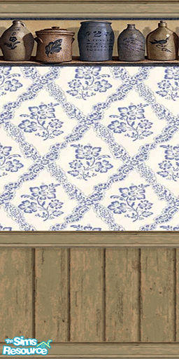 A touch of country with farm yard, ole cafe and jugs designs. Can go in your Sims kitchen or dining room. Decorative kitchen designs in wallpaper with beautiful woodworking.