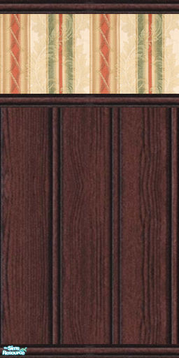Lovely dark wood paneling with far eastern striped bordering. Part of the Casbah Living set by Riverwillows.