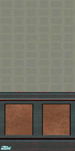 Sage vinyl wallcovering with wood paneling, inset with copper.