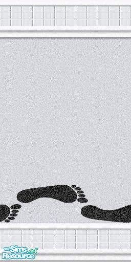Beautiful designer walls in grey vinyl sheeting and grey tiles for kitchen or bath. Footprints.