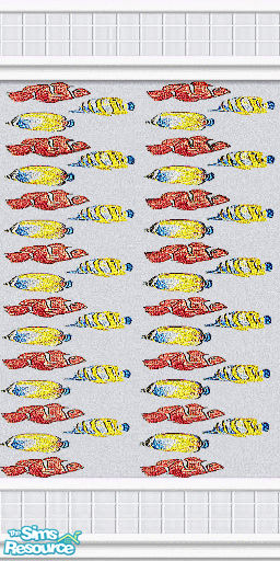 Beautiful designer walls in grey vinyl sheeting and grey tiles for kitchen or bath. Fish.