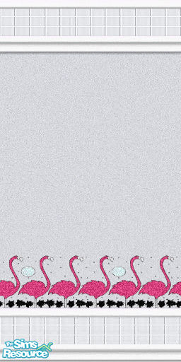 Beautiful designer walls in grey vinyl sheeting and grey tiles for kitchen or bath. Pink flamingo.