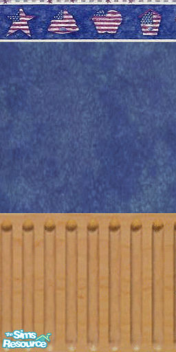 Americana 2 features a star, bell, apple and birdhouse in American flag motif with a wood slat chair rail.