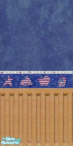 Americana 3 features a star, bell, apple and birdhouse in American flag motif atop a wood slat chair rail.