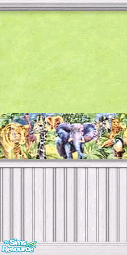 Jungle Animal 4 features a lime green background with white trim and beadboard with a cute jungle animal border.