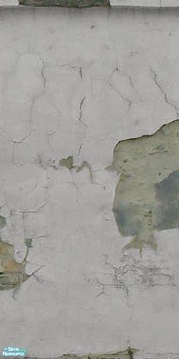 Cracked white plaster peeling off of an underlying yellow-cream brick wall. Set of eight tiles that form a continuous tiling strip.
