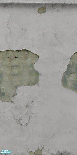 Cracked white plaster peeling off of an underlying yellow-cream brick wall. Set of eight tiles that form a continuous tiling strip.