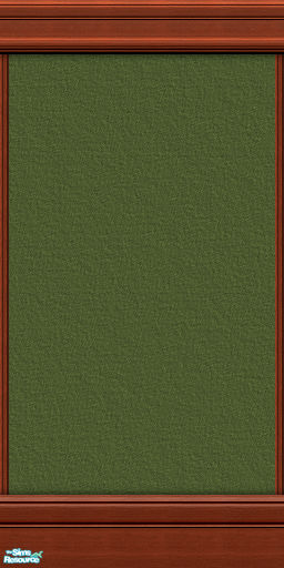 Deep green stucco wall with rich redwood crown molding, base board, with vertical side trim. Compliments my FLW Prairie Livingroom set.