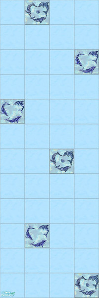 From my \'Aqua-Marine Dolphin Bathroom\' - Aqua-Blue wall tiles with mosaic dolphin inserts to match the floor tiles.