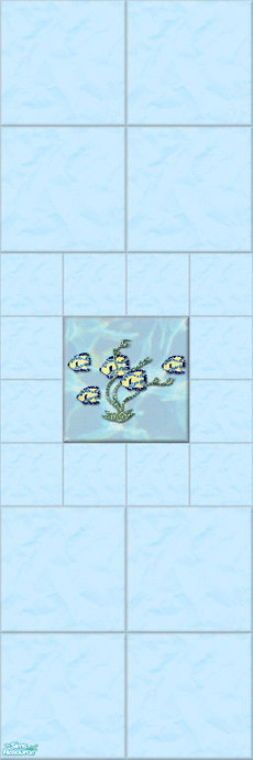 This is one from a set of 15 tiled walls, with a watery effect patterning, a mosaic tile in the centre, featuring various sealife creatures, surrounded by smaller tiles to give a central border. Mix-n-match for a great look in bathrooms. Co-ordinating floor tiles also available - please see \'Recommended Item\' link.