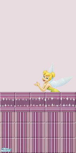 Sweet little Tinkerbell wallpaper...purple star border... matching striped wallpaper and vinyl tile for around tub. Carpet and linoleum.