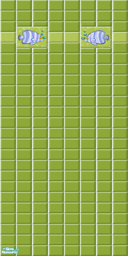 Dark green wall tiles with a large fish decor for your sims\' favourite bathroom.