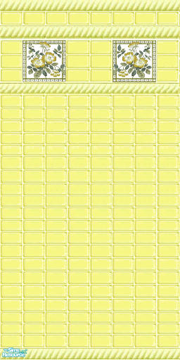 Yellow tile wall with vintage wild rose tiles forming a decorative border. Part of an inexpensive tile set for your sim kitchens and baths requested by wencke103.