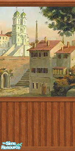 A scenic mural of Venice with mediumwood beadboard and crown moulding. Three tiles make up the complete set. *TSRAA Member*