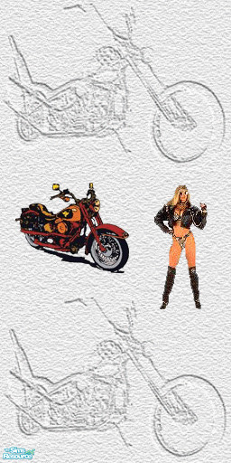 Bike Backgrnd with Girl & Cycle Decals Wallpaper. TSRAA Member. "Biker" (Harley-Davidson mostly) Mix & Match Sets. This is a Wallpaper & Floor Set #4. More object & walls & floor sets coming. Enjoy!!