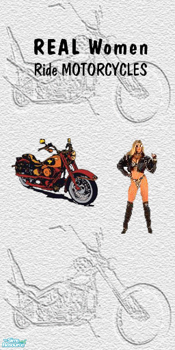 Bike Backgrnd with Girl & Cycle & Real Women Ride Motorcycles Decals Wallpaper. TSRAA Member. "Biker" (Harley-Davidson mostly) Mix & Match Sets. This is a Wallpaper & Floor Set #4. More object & walls & floor sets coming. Enjoy!!