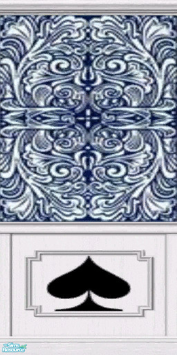 This wallpaper features a design based on the backs of Hoyle Maveric playing cards. This version has a spade print in the middle of the wooden pannel.