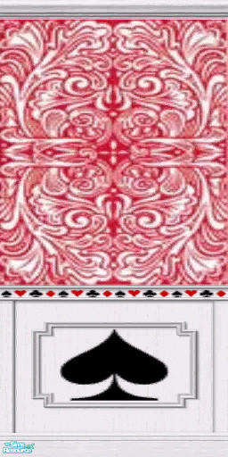 This wallpaper features a design based on the backs of Hoyle Maveric playing cards. This version has a diamond print in the middle of the wooden pannel, and a row of suit symbols just beneath the wallpaper.