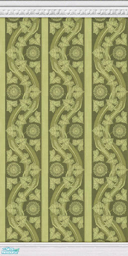 This wallpaer has a green vertical design. The design is made up of lizards and floral like images.
