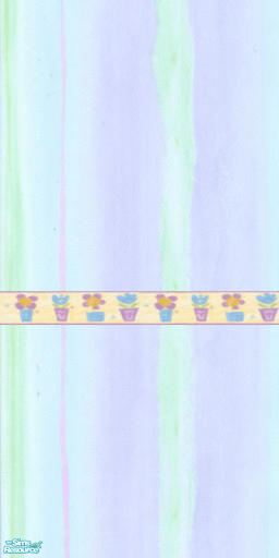 Violet Green Wallpaper with Creme Flower Border as the chair rail. A beautiful paper for your little girls room.
