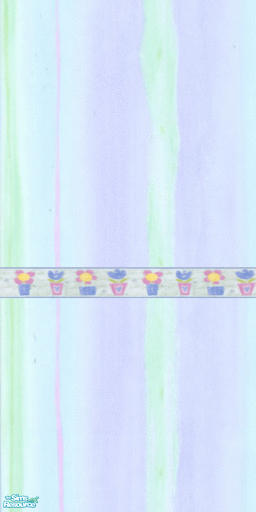 Violet Green Wallpaper with green Flower Border as a chair rail. A beautiful paper for your little girls room.