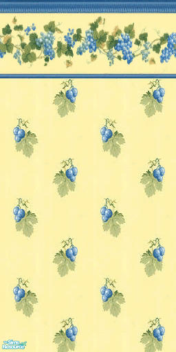 Blue grapes atop a pale yellow wallpaper, bordered by more blue grapes.
