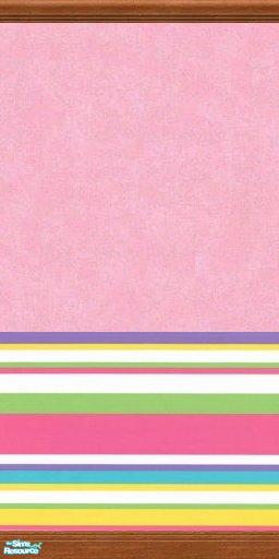 Cheerful pink "Sponge" style wallpaper with classic wood moldings with brightly striped base.